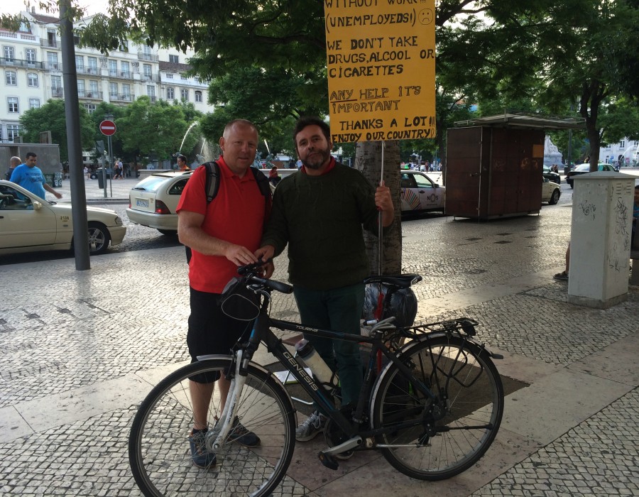 Swój rower oddałem Filipowi i Marii, którzy obecnie nie mają nic ze względu na swoją przygodę z bankami. Po pięćdziesięciu dniach, bez większego bagażu wracam do domu. Mam już bilety powrotne: Lizbona – Katowice via Frankfurt. Właśnie wychodzę z pokoju i kieruję się na lotnisko z nadzieją, że żona wyjedzie po mnie… Poniżej pokaz slajdów ze zdjęciami z Lizbony: zobaczycie oceanarium, wspomnianego Filipa już z jego rowerem, knajpy odnalezione w zagubieniu i wspaniałą fryzjerkę, która poświeciła mi z dwie godziny strzygąc na jeża. Wspomnę, że w tych dwóch godzinach półtora była poświęcone na rozmowę telefoniczną z córką. W czasie strzyżenia zobaczyłem i zrozumiałem co się dzieje w dwóch serialach portugalskich. Czego nie zrozumiałem, to tłumaczył mi jej wnuk, sześciolatek, który nie przejmował się moją nieznajomością portugalskiego … Grass, hash, cocaine – napotkasz wszędzie, gdzie są turyści… a szkoda bo rzuca to trochę cienia…
